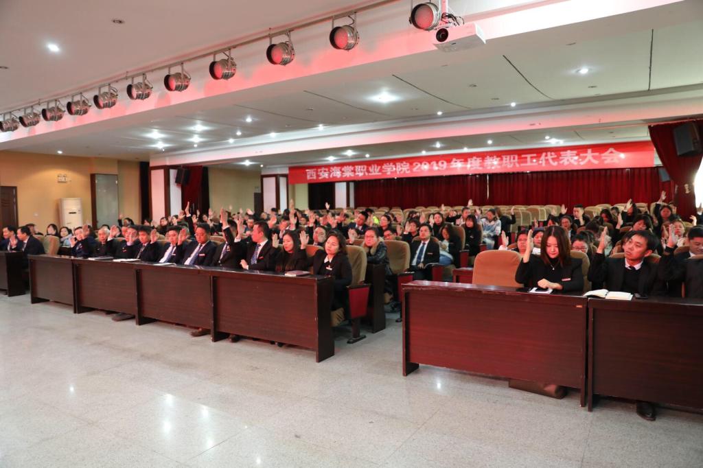 会议上,全体教职工代表集体审议并举手表决,全票通过了学院“2019-2020学年财务预算工作报告"、“2019-2020学年人力资源规划工作报告”、“学院年度工作报告”及新修订的“beat365手机版官方网站章程”。
