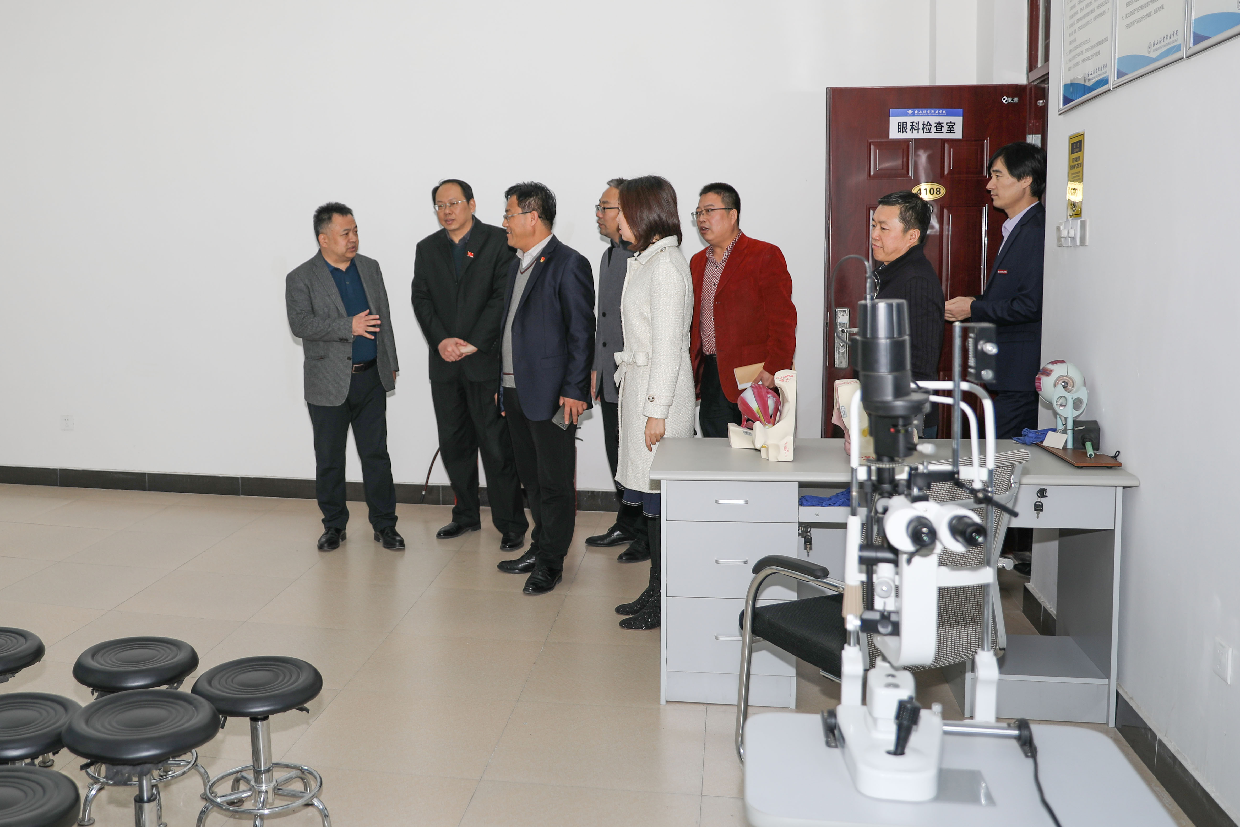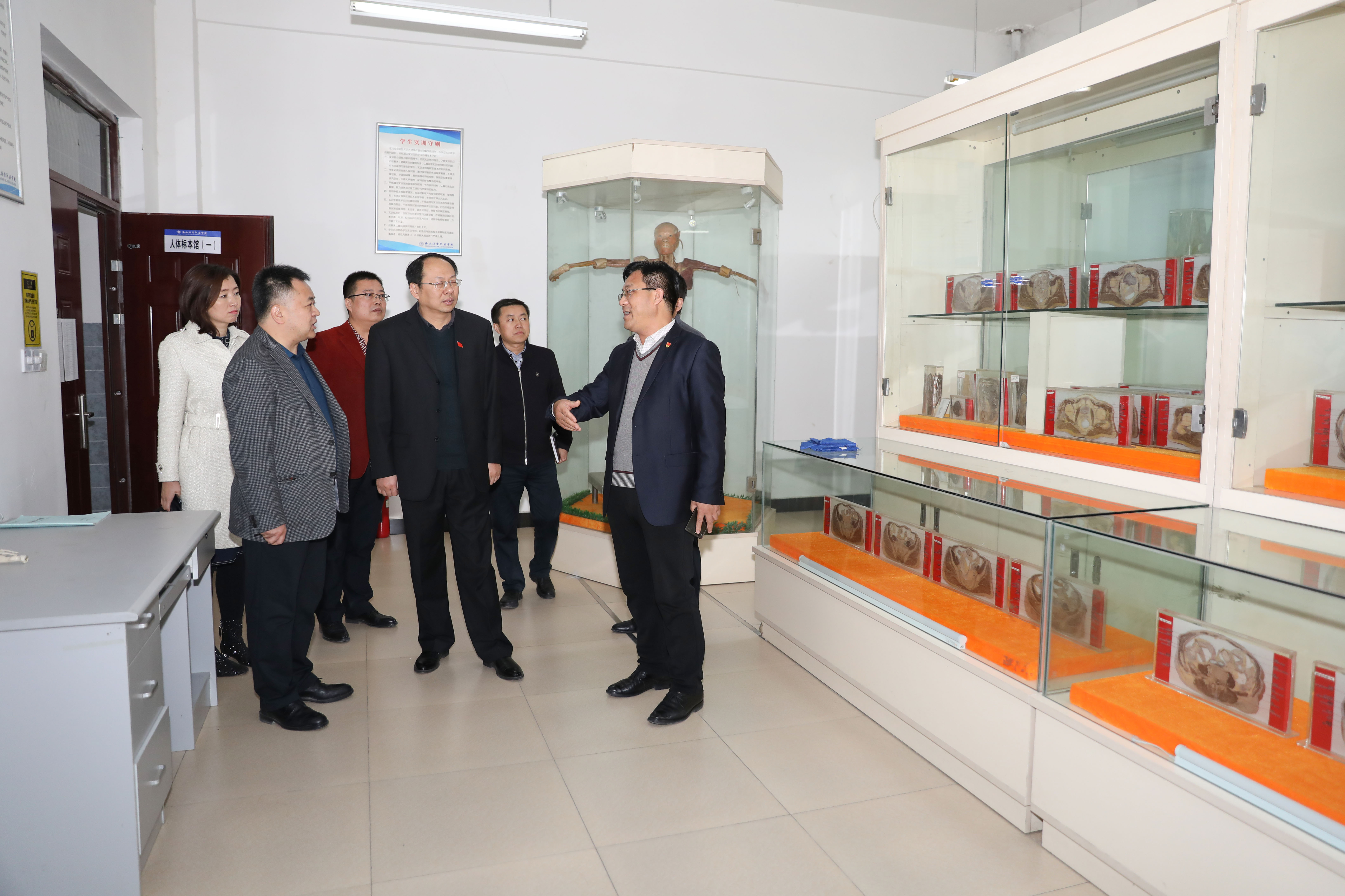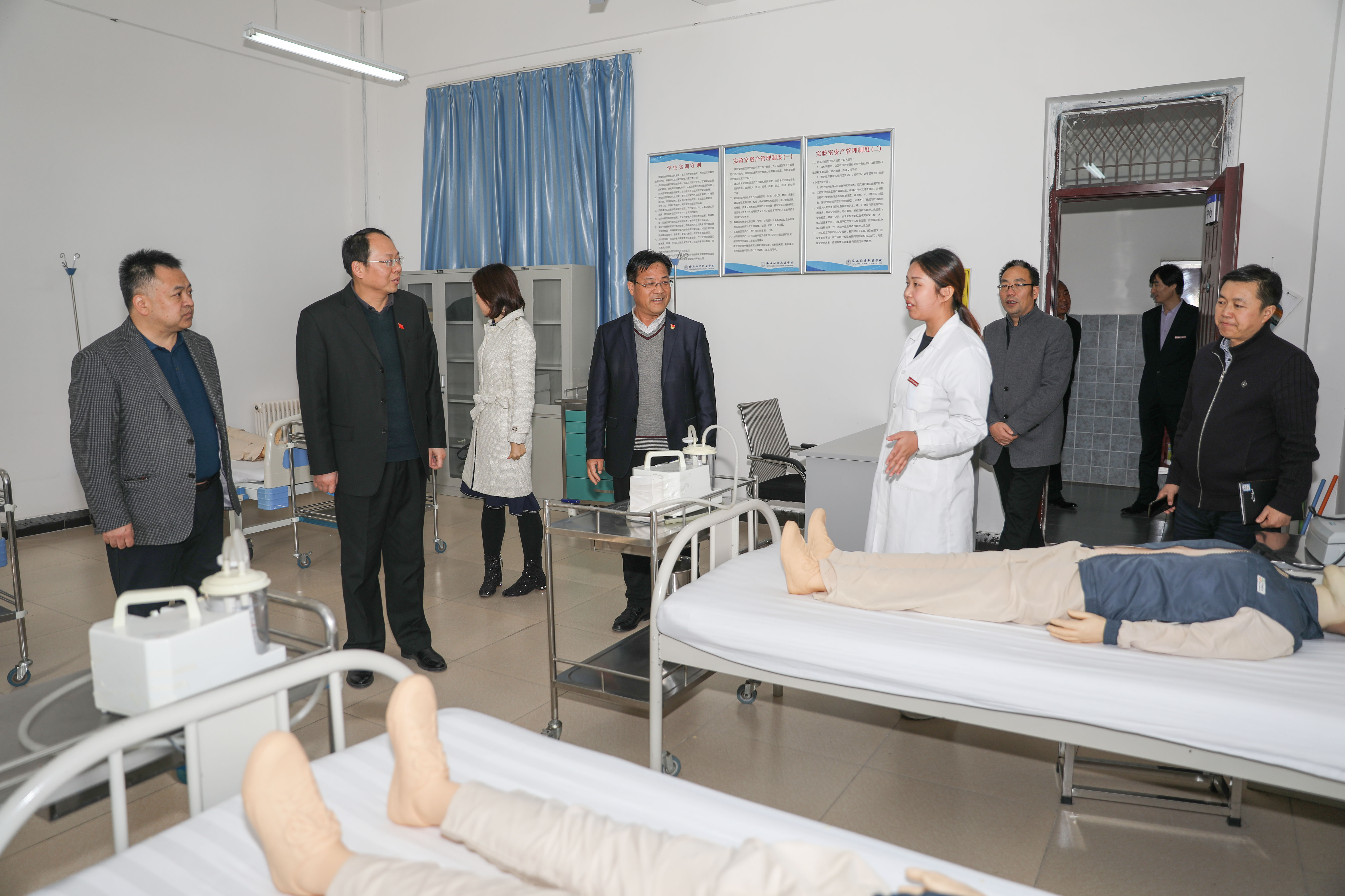贾院长一行人先后对我院医学美容实训中心、医学技术实训中心、校医院进行了参观。