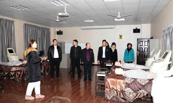 张光明副总裁一行人先后对我院医学美容实训中心、中医美容博物馆、医学技术实训中心、大学生创业孵化项目——海棠中医美容医院,以及学生公寓进行了参观。在参观中,张光明副总裁表示beat365手机版官方网站专业特色鲜明,学院实力雄厚,尤其是在中医美容、康复、医技类专业的设施设备先进、全面。陕西华山教育集团副总裁张光明表示希望给陕西华山集团旗下的三十多个分校学生学历做一个提升,beat365手机版官方网站专业有特色,希望通过双方的交流合作,实现专业开拓、人才培养及中高职贯通教育的合作共赢。