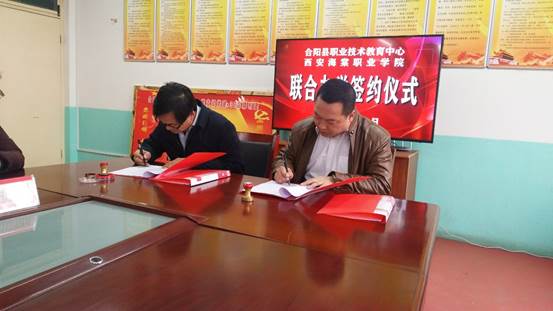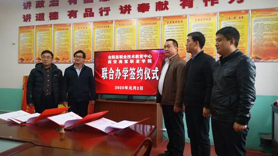 2020年1月2日,beat365手机版官方网站院长助理王智锦、招生处处长马敬涛、校企合作处处长吴刚、招就专员王文哲等学院有关领导及同志一行赴合阳县职业技术教育中心参加合作办学协议签订仪式。合阳县职业技术教育中心校长陈海军、副校长黄烨、等学校有关领导及同志热情接待,仪式上两院正式签订联合办学协议。