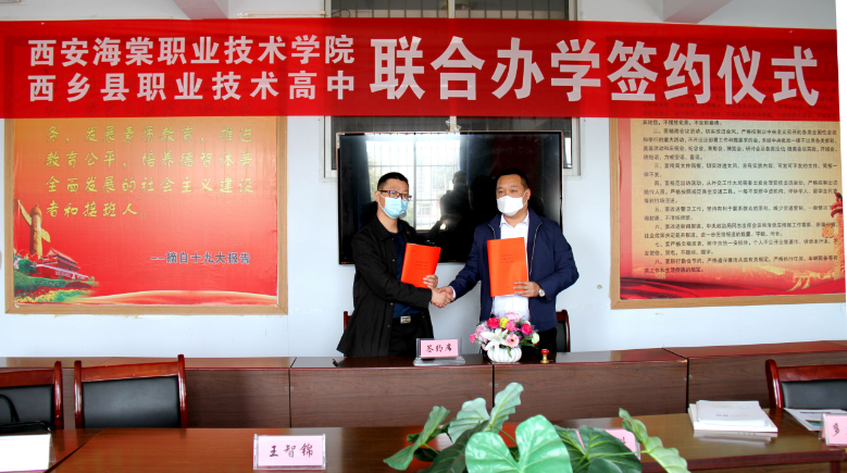 西乡县职业技术高中校长王世强、常务副校长杨宝成 、分管教学及政教副校长谯立军 、党支部负责人副校长陈满良、就业及培训副校长李松、招办主任肖献勇、办公室主任李琴等学校有关领导及同志热情接待,仪式上两校正式签订联合办学协议。