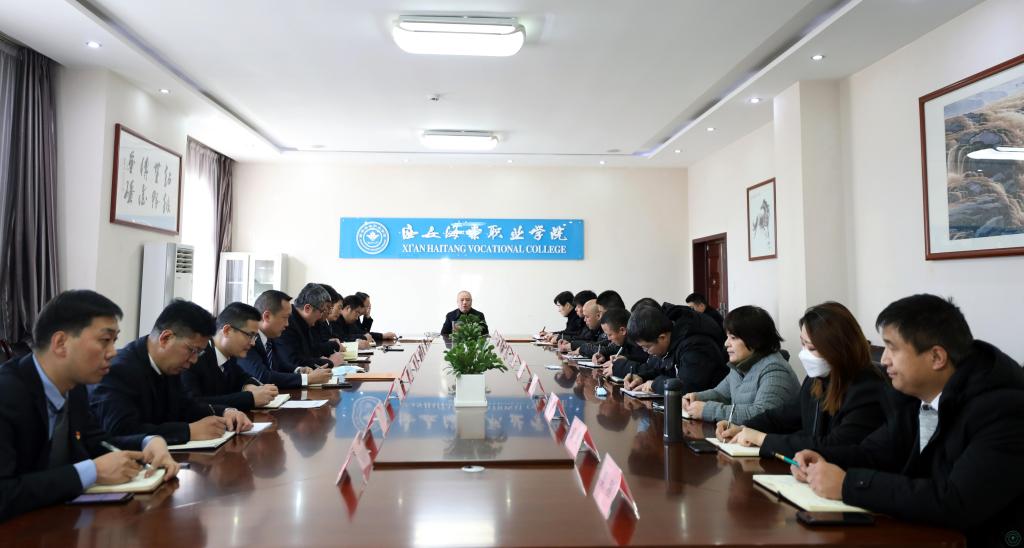 1、冯居秦院长代表海棠职业学院作表态发言并对寒假期间防疫工作安排部署进行汇报