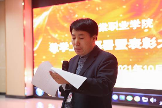 会议伊始,张建利处长宣读《关于2020-2021年度优秀教师表彰决定》《关于第七届互联网+大学生创新创业大赛表彰决定》,并对经济管理学院彭丽娟、医学美容学院连金玉、医学技术学院袁婧等六位优秀教师进行了表彰奖励。