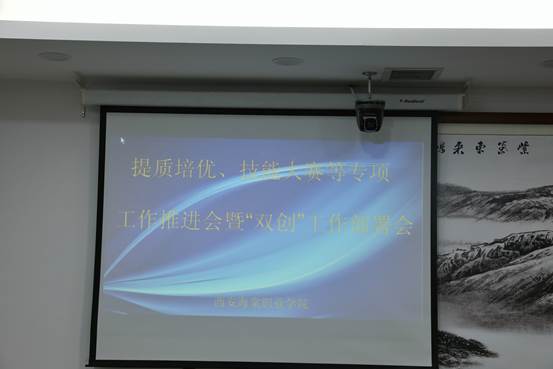 2021年10月15日上午,beat365手机版官方网站教学工作部在行政楼一号会议室召开了提质培优、技能大赛等专项工作推进会暨“双创”工作部署会,分析当前各项教学工作现状,研究高职教学培优提升行动,部署以“培优提质”为工作方向、“以赛促教”的学院教学质量提升的相关教学工作安排。
