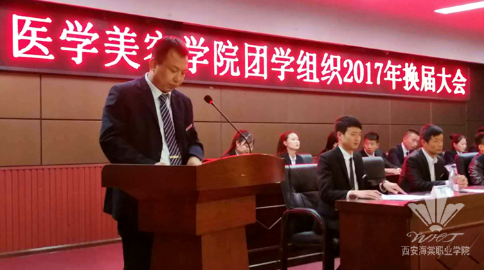 出席本次大会的领导分别是:学生处副处长赵刚刚、医美院副院长马超、医技院副院长朱雄波、经管院副院长秦志春、院团委副书记王芸、医美院学生科科长冯波。本次会议由马张伟老师主持。