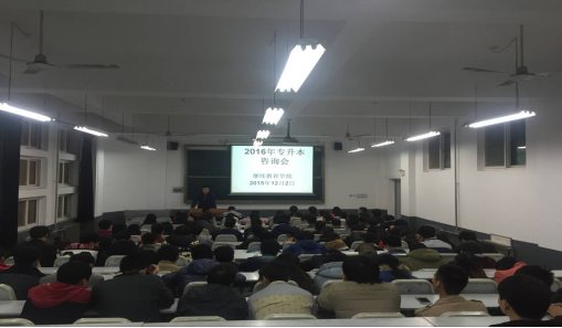 为做好2016年专升本考试工作,提升学院学生就业率。结合本部门的工作计划,12月2日晚,我院在2号教学楼2313多媒体教室举行了第一次专升本招生考试咨询会。2013级全体辅导员及近200名学生踊跃参加。会议由我院继续教育与国际交流科长史彬主持,杨国峰院长出席会议。