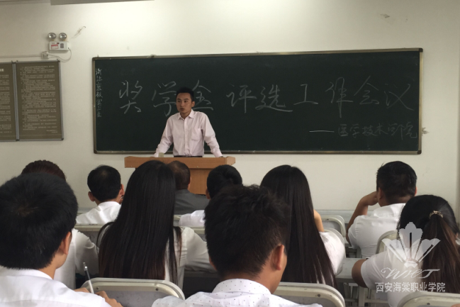 2015年9月24日下午14:30分,医学技术学院在3419大教室召开了2015—2016年度奖学金评选工作会议。医学技术学院院长韦满余、学生管理副院