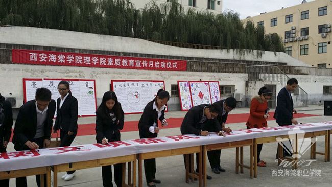 10月15日下午4点,西安海棠学院理学院在排球场举行了素质教育宣传月启动仪式以“树文明新风、立文明意识、做文明大使、展真我风采”为口号的签名活动及主题系列活动。出席仪式的领导有理学院院长尚海洋,学生处副处长,团委书记石博、理学院副院长赵刚刚、中医美容团总支书记康有为、护理学院团总支书记王典、医学技术学院团总支书记王小维、技师学院团工委书记逯小飞、理学院团总支书记王海利及理学院千余名师生。