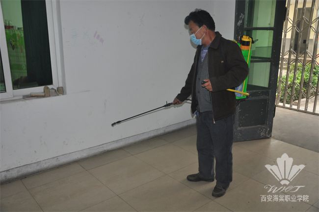 随着春季到来,各种细菌、病毒也到了活跃期。为了更好地保护广大师生的身体健康,防止疫情在学院传播,在学院领导的安排下,2014年4月4日、5日,学院总务处环卫绿化科对全院各教室、公寓、食堂、网吧、浴池进行了消毒工作。