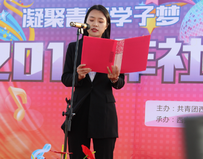 活动伴着国歌和冉冉升起的国旗正式开始,院团委王芸书记发表了热情洋溢的致辞。她表示,此次社团文化庆典的举办,希望能给同学们提供更多锻炼的机会和展现自我的平台,以社团文化来提高同学们的综合素质。也借这次机会,来增强各社团、协会以及社团联合会之间的沟通,来实现共同进步、共同发展。