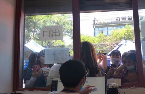 “你好,麻烦这边排队测一下体温”,志愿者们一遍又一遍地重复着话语,维持着现场的秩序,也让紧张的接种人员感到一丝安定。