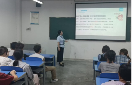 护理专业以“开启护理之旅,编织生命关怀之网”为主题,由经验丰富的护理教研室陈丽萍、司瑞雪等教师组成的宣讲团主讲。老师们通过生动的故事和前沿的护理案例,展示了护理专业在生命守护中的核心价值与无限可能。从基础护理到专科护理,再到社区健康管理和国际护理视角,全方位勾勒出护理职业的宽广天地。特别针对学生普遍关注的实习就业、职业晋升等问题,教师们以详实的数据和生动的案例进行了细致解答,让新生们对未来充满了信心与期待。她们强调,每一位护理人员都是生命旅途中的温暖守护者,鼓励新生们用心感知、用爱践行,将关怀融入每一次的护理实践。