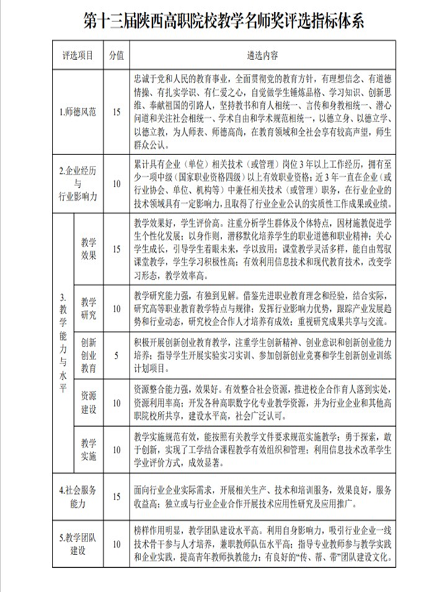 1.第十三届陕西高职院校教学名师奖评选指标体系