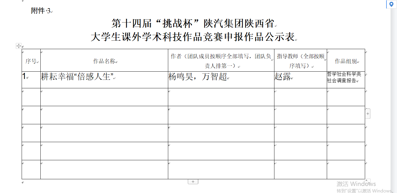 根据团省委《共青团陕西省委中共陕西省委教育工委 陕西省科技厅等关于组织开展第十四届“挑战杯”陕汽集团陕西省大学生课外学术科技作品竞赛的通知》文件,以及我校相关通知要求,截止2023年3月23日收集作品共计自然科学类学术论文、哲学社会科学类社会调 查报告、科技发明制作40件。4月7日进行评审打分,每类作品评出一.二,三等奖(成绩并列同等奖次对待)。